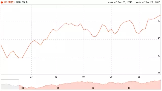 數(shù)據(jù)顯示,11月上旬開始,WTI從11月初的45.69美元/桶持續(xù)拉升至11月底的51.68美元/桶。