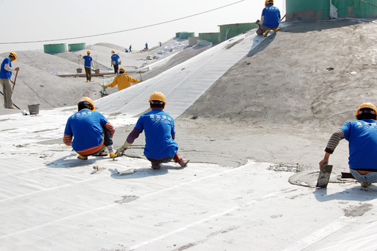 由于項目的重要性,建設方對時間和質量提出了高標準、嚴要求,不但要求材料優良,技術過硬,而且必須具有快速施工的能力。10月份,偏逢海南遭遇歷史罕見暴雨,無法正常施工,給青龍公司帶來了最為嚴峻的考驗。為了確保工程如期完成,青龍公司擴大施工隊伍,120余名建設者加班加點,堅守崗位,全力以赴,打造好的細節。從成品出庫、物流、施工、檢驗、后勤保障等,每一個細節爭分奪秒。在青龍人的精心操作和不懈努力下,工程如期完成,10萬平方米的保溫層已順利通過驗收,工程質量監督負責人和市級領導多次考察,對青龍能在如此巨大壓力下的超常施工能力表示贊嘆。目前正在進行防水抗裂層及屋頂GRC工程安裝,預期春節前完工。