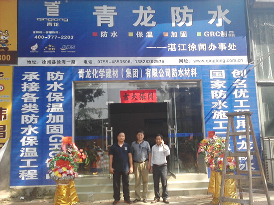 目前,青龍防水在全國已經擁有多家專賣店,此專賣店的開業是青龍公司總部與湛江代理商加強深層次戰略合作的結果。湛江代理商白總介紹,青龍品牌市場口碑好,檔次高,資質齊全,配套服務好,品種多,主營產品涵蓋了建筑施工的各種防水需要。白總講加盟青龍才一年就嘗到了甜頭,承接了湛江中海油數百萬的維修補漏工程。此次布局徐聞市場,白總充滿信心。