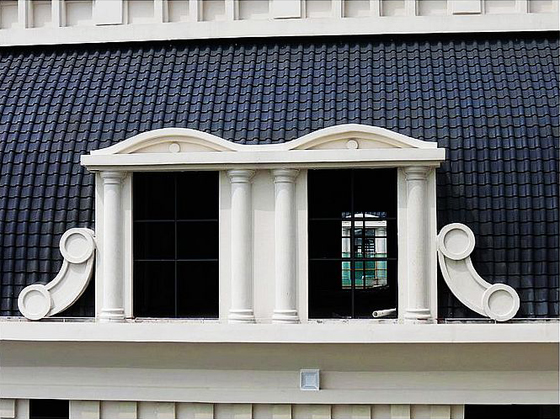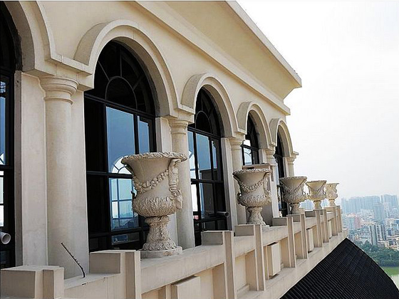 項目的B座為商住樓建筑,呈現出歐式風格。建筑的外觀均為經典的灰白配色,外墻則采用了廣西青龍化學建材有限公司生產的歐式構件作為裝飾,包括羅馬柱、窗框裝飾構件、建筑線條,雕塑等,從細微處展現出建筑的非凡品質。此外,建筑頂部的幾層和裙樓部分也大量地采用了歐式構件,從而將古典歐式建筑的精髓演繹到好的,成為了南寧商住樓建筑的新標桿。