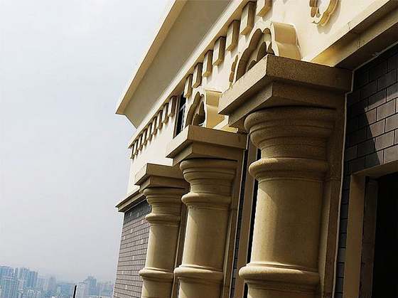 青龍(集團)公司集產品開發、生產、建筑藝術裝飾于一體,近年來,憑借著雄厚的技術力量、齊全的生產設備,公司生產出包括飾線、羅馬柱、窗套、檐花、欄河花瓶、浮雕等一系列極盡裝飾美感的水泥外墻裝飾產品,被廣泛地應用在各種高檔樓盤當中,成為了它們不可缺少的伴侶。