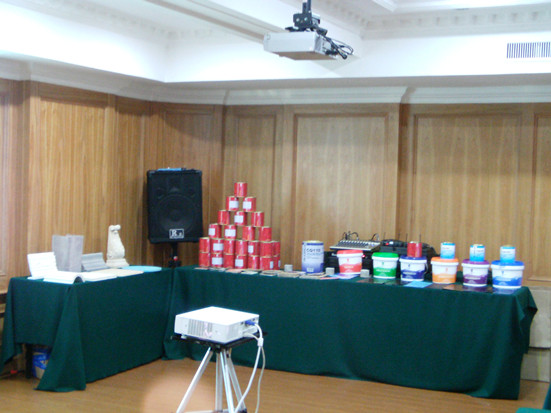 青龍建材集團北京區域經理朱正彬以膠東半島的建材市場的現狀為例,為大家解析了建材行業未來的發展前景,并就青龍建材公司“一個品牌,四門生意”的招商加盟政策做了詳細的介紹。福建大區域經理周炳陽工程師則深入地剖析了青龍牌防水涂料、新的型反應交叉膜自粘卷材、EVB高強保溫隔熱板、GRC歐式構件等產品的特點及應用,幫助與會者更好地了解青龍建材的主推產品。
