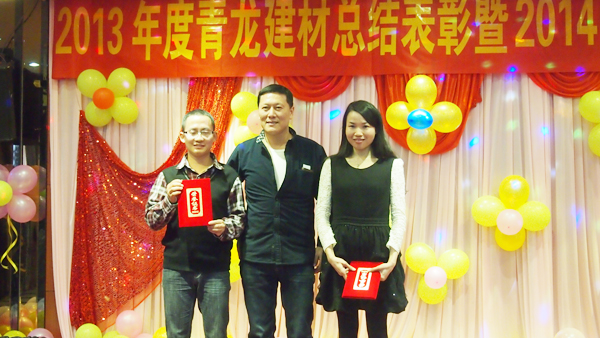 晚宴上,青龍廣西分公司韋流武先生代表集團董事長宋總致晚宴開幕辭并送上新年祝福。韋經理總結了2013年青龍廣西化學建材的發展歷程,肯定了2013年所取得的成績,并對2014年寄予了美好展望。之后對2013年青龍廣西化學建材表現優異的員工進行表彰,鼓勵大家向他們學習,繼續為生產中國較好的防水材料而奮斗。