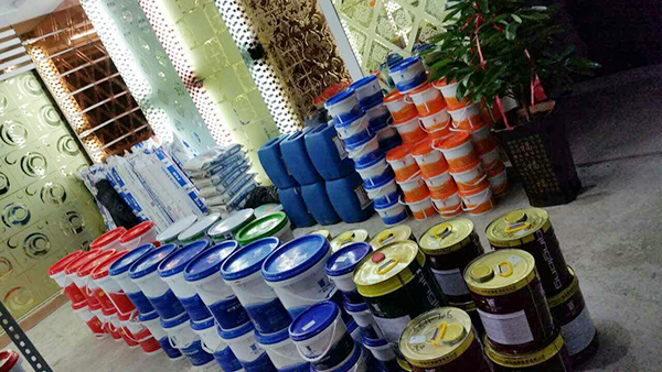 青龍臨澧防水專賣店碼放整齊的防水材料
