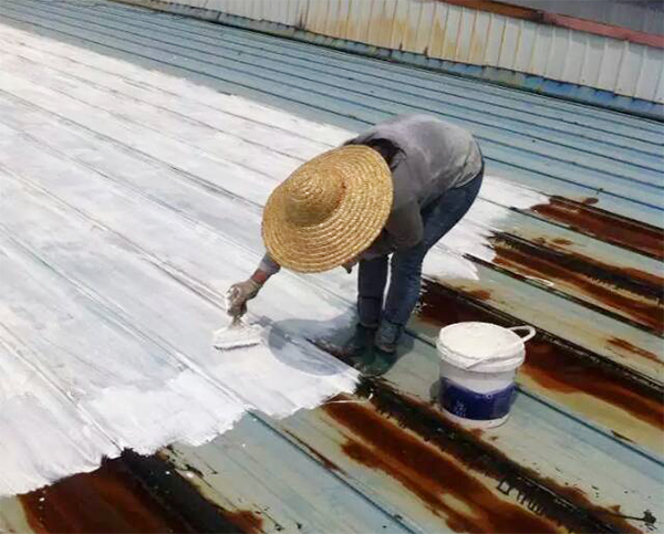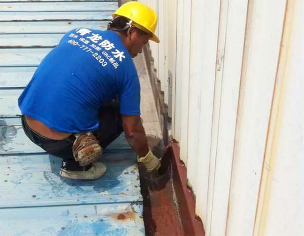 青龍公司中山經銷商張總成功承接了這一防水補漏工程。經過實地仔細檢查,并經與客戶詳細協商,之后敲定采用青龍公司CQ103丙烯酸酯好的彈性防水涂料和CQ104單組份濕固化純聚氨酯防水涂料的組合補漏方案。青龍CQ103丙烯酸酯防水涂料具有良好的耐老化、延伸性、粘結性、成膜性及耐高溫性,因此非常適合在鐵皮房屋頂作整體涂刷;而屋頂排水溝則采用CQ104單組份濕固化純聚氨酯防水涂料。