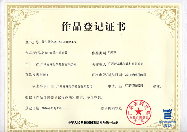 該證書的獲得,是青龍公司在知識版權(quán)工作上的又一個里程碑,它意味著青龍公司在具有獨(dú)立知識版權(quán)的防水行業(yè)得到了國家權(quán)威的認(rèn)可和充分的肯定。