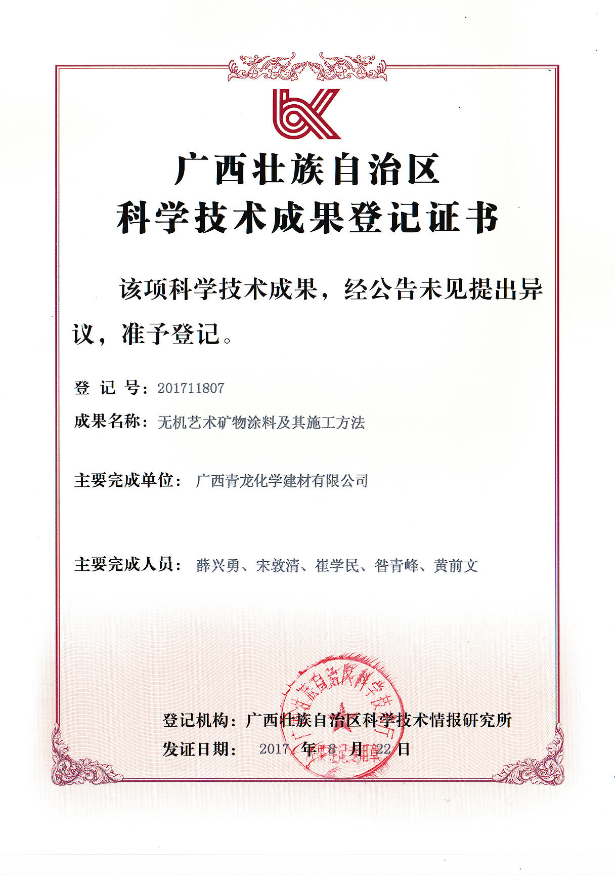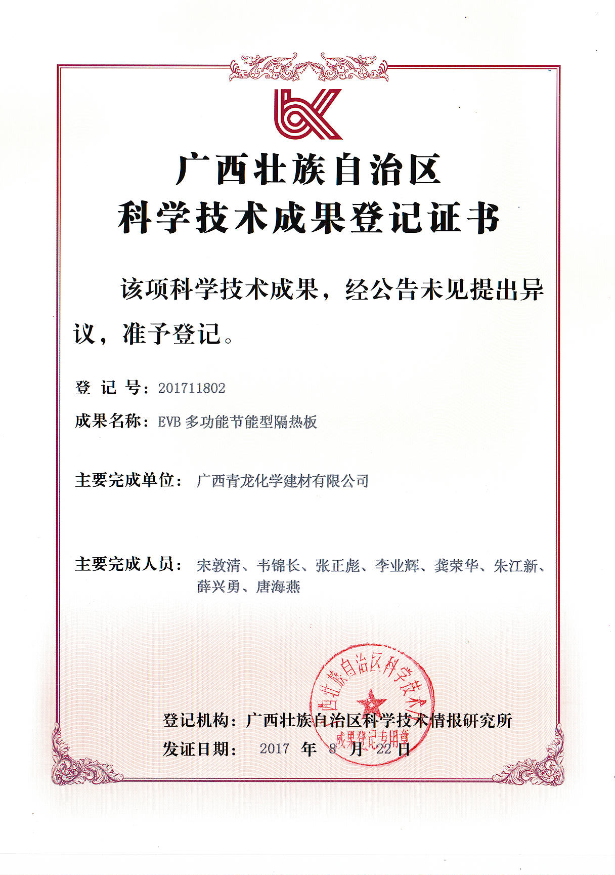 青龍建材七項科技成果,請君過目: