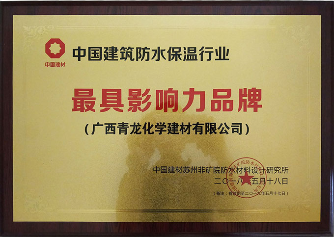青龍榮獲"中國建筑防水保溫最具影響力品牌"稱號