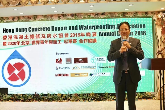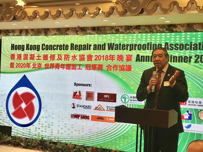 9月13日,值香港混凝土維修及防水協會(以下簡稱HKCRWA)2018年會及成立第三十二周年紀念晚宴之際,兩岸四地(中國大陸、中國香港、中國澳門、中國臺灣)防水協會及相關領域領導人、嘉賓在香港九龍新港中心濟濟一堂,就分別組團參加2020年北京第28屆世界青年屋面工冠軍賽等事宜達成共識。