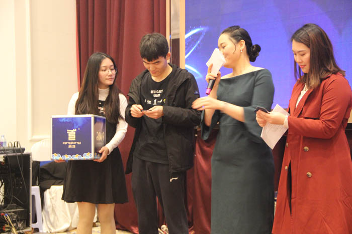 除了精彩的文藝節目,更讓人充滿期待的當然是晚會標配的抽獎啦!今年公司為大家準備了微信搖一搖、精美實物獎勵、微信紅包和現金紅包等等多項多種大獎,主持人每一次的報獎都讓大家小心臟撲通撲通的跳,充滿希望,中獎者喜不自勝!一輪又一輪大獎也將年會推向高潮,大家都非常的興奮,歡快!