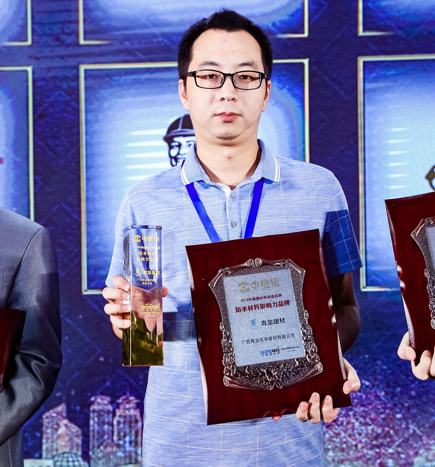 大會還對住宅內裝產業各類別企業進行了表彰和頒獎,將大會推向了高潮 ,青龍建材憑借品牌實力和市場影響力成功榮獲防水材料影響力品牌獎,展現了行業專家、業界同行和市場對青龍公司的肯定和認同 。