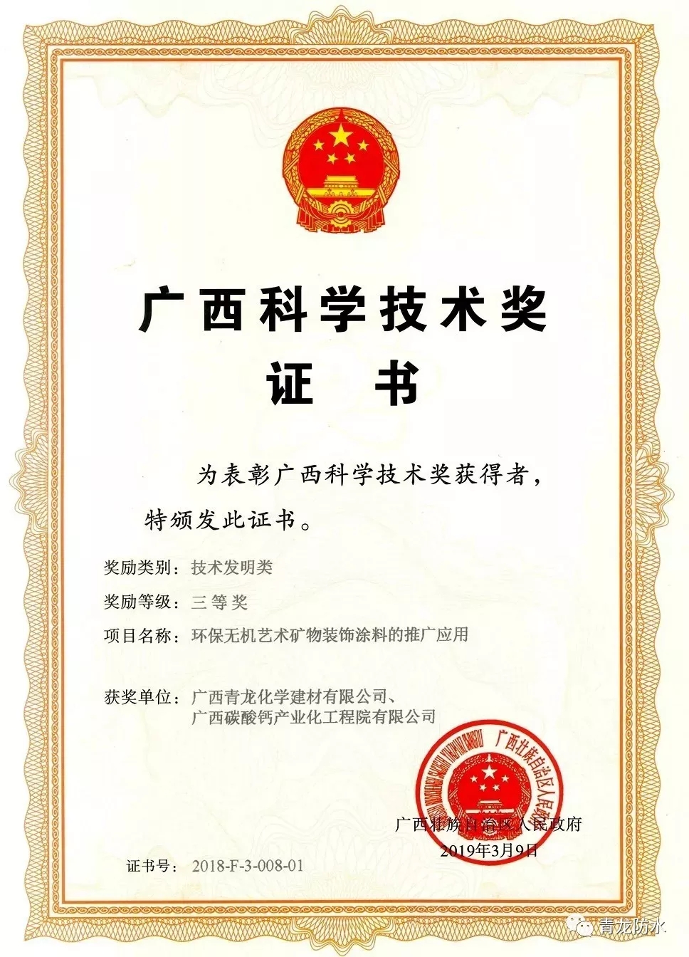 4月9日在廣西科學技術獎勵大會上,青龍公司榮獲2018 年度獲得廣西科學技術獎技術發(fā)明類三等獎。