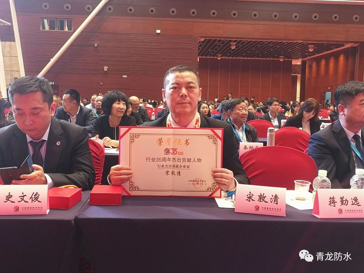 同時,宋董事長還榮獲"行業杰出成就企業家"獎,公司反應粘結型高分子自粘膠膜復合防水卷材榮獲"2019年全國建設行業科技成果推廣項目"證書,凸顯了青龍的實力和影響力。