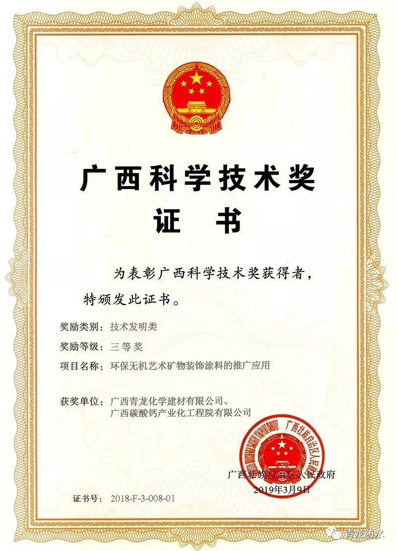 9月,在廣西科學技術獎勵大會上,青龍公司榮獲廣西科學技術獎三等獎。