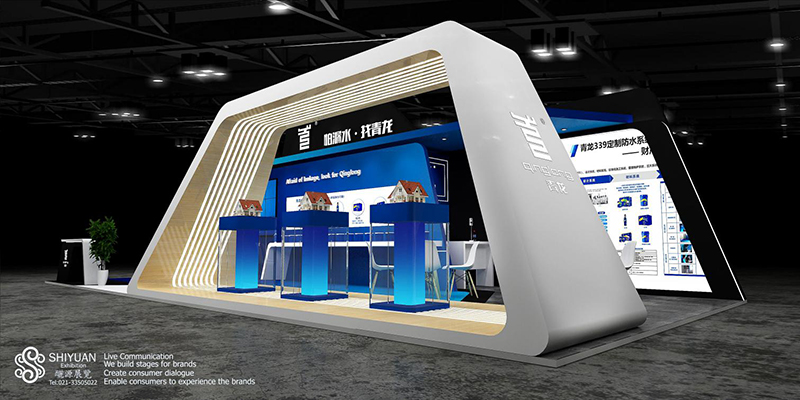 青龍防水展館整體呈現(xiàn)出極簡流線型的,如公司防水涂料流水般的圓滑流暢風(fēng)格。它在原有青龍藍的基調(diào)基礎(chǔ)上加入咖啡色作為誘導(dǎo),讓整個空間色彩飽滿豐富,既有時尚大氣的熱情奔放,也有極簡輕奢的科技風(fēng)范。