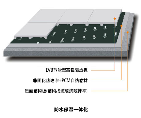 為有效改善屋面防水保溫綜合性能,使屋面防水保溫做到一勞永逸,條件允許可采用防水保溫一體化系統=結構找坡+拋丸+非固化熱速涂+PCM自粘卷材+隔熱板,徹底根除滲漏,確保隔熱保溫的效能。這一系統也將成為未來屋面防水保溫的新理念。