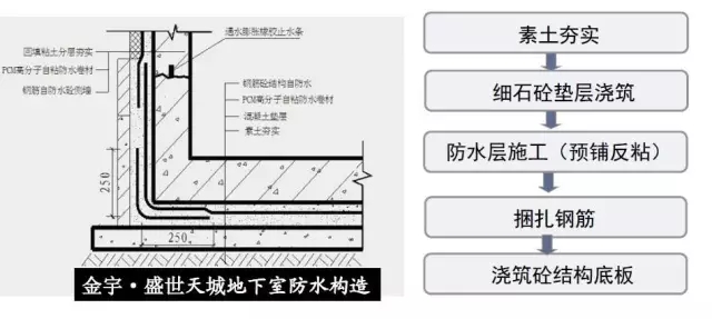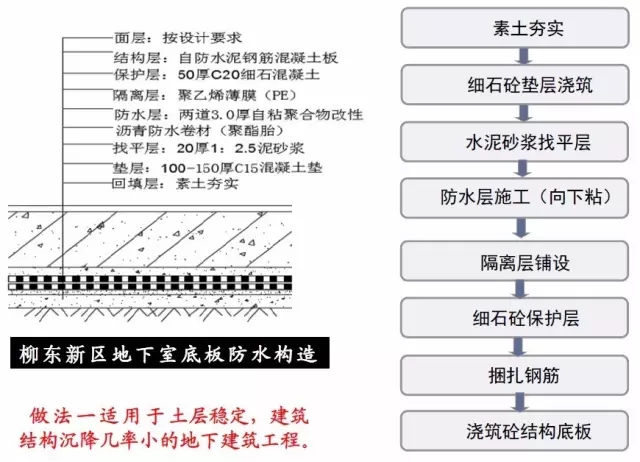 1、細石砼墊層厚度一般不小于100mm,鋼筋砼結構底板厚度一般不小于500mm,防水層反粘于鋼筋砼結構底板更穩定、牢固,防水層與鋼筋砼結構沉降一致;