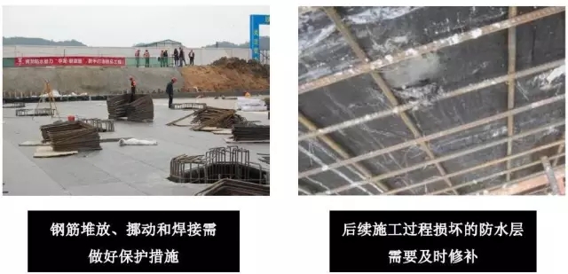 2、防水層施工后,鋼筋砼結構底板施工前的相鄰工序,如支模板、捆扎鋼筋(焊) 等,需要相應班組對防水層的實時、悉心保護;