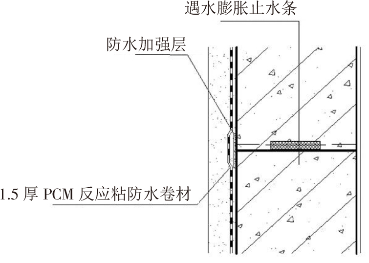 本工程項目地下室防水根據相關要求設計為一級防水,鋼筋混凝土抗滲等級為P8,主要部位防水設計見圖2—5。