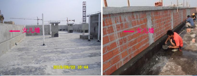 9、女兒墻:指的是建筑物屋頂外圍的矮墻,除了護欄作用外,還起到給平面防水層上翻收口,以避免防水層滲水或是屋頂雨水漫流。依建筑技術規則規定,女兒墻被視作欄桿的作用,如建筑物在10層樓以上高度不得小于1.2m,為避免業者刻意加高女兒墻,方便以后搭蓋違建,亦規定高度最高不得超過1.5m。