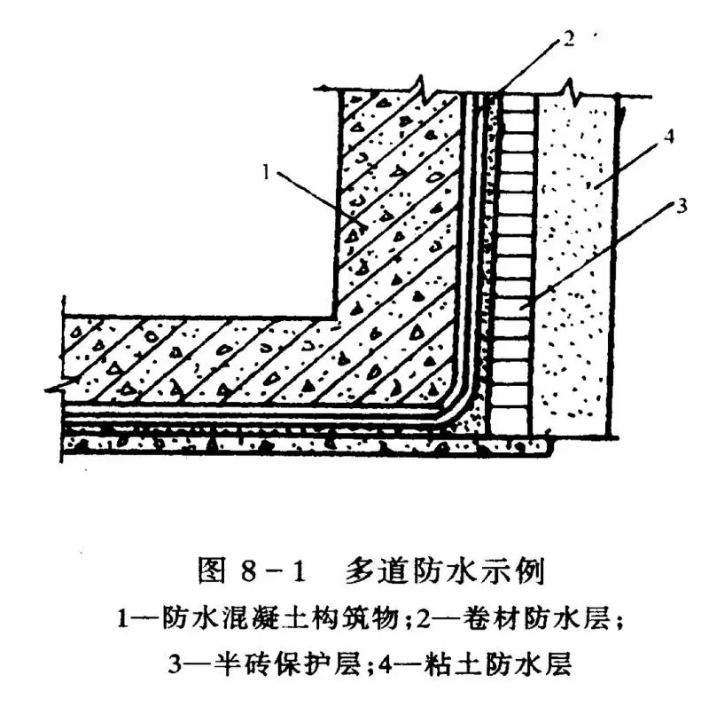 (1) 建筑地下防水一般為砼結構自防水加卷材防水層。地下工程滲漏水的原因主要涉及到材料、設計、施工等多方面因素,重點是施工質量控制。