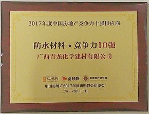 熱烈慶祝青龍入選2017年度中國房地產防水材料類競爭力供應商