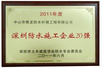 青龍防水補強榮獲“深圳建筑防水企業20強”, 隔熱保溫防水一體化材料全國領先